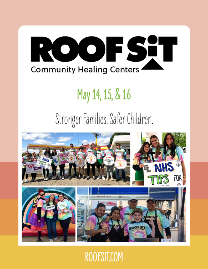 Roof Sit is an event that raises awareness and funds for Community Healing Centers’ Children’s Programs. These programs include the Bill Wright Children’s Advocacy Center of Kalamazoo, Children’s Alliance programming, Infant Mental Health Services, and case management and mental health services for youth. Roof Sit is a powerful reflection of our community in-action, mobilizing to bring hope and healing to children and families in our community. This annual event and is held at the corner of S. Westnedge and Milham in Portage, Michigan.